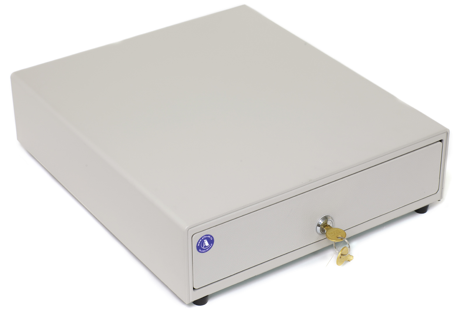 Автоматический денежный ящик с механизмом, рассчитанным на 500 000 открытий, для кассовых мест с ограниченным пространством.